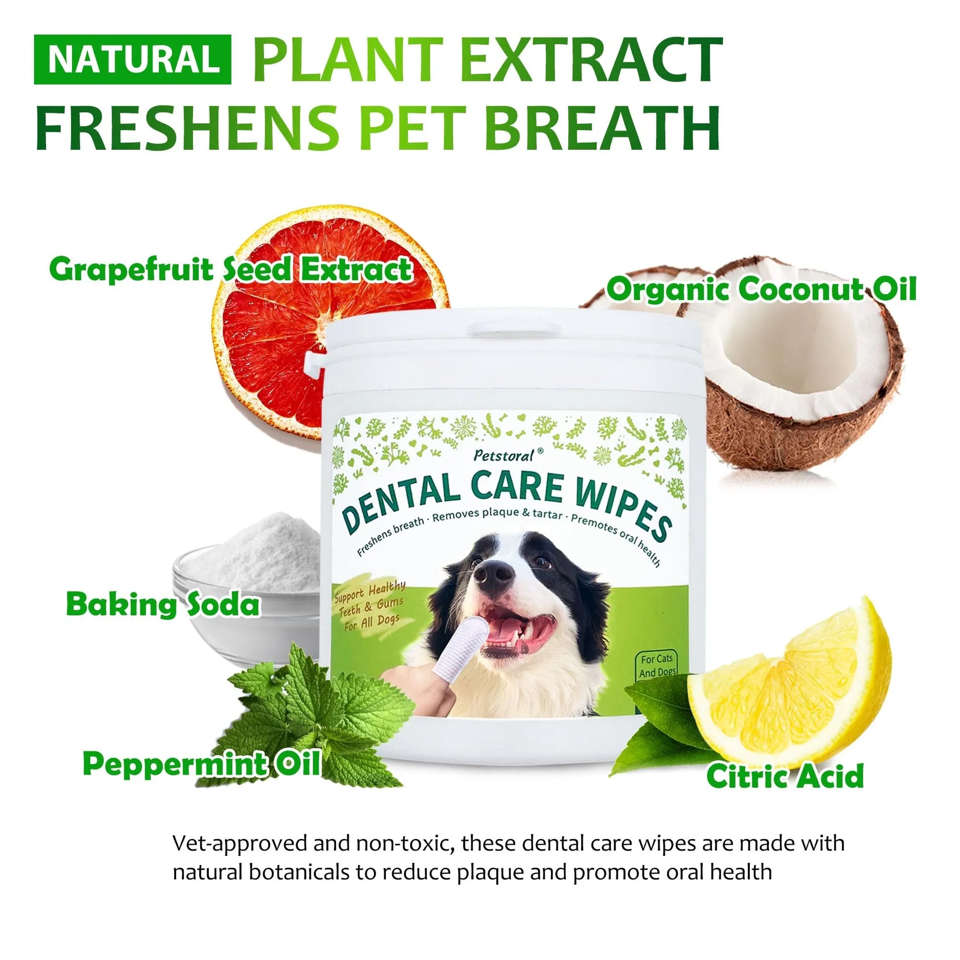 Petstoral Dental Cleaning Kit, Dental Care Wipes to Clean Plaque on The Surface of The Teeth, Beef Liver Flavour Dental Powder with Probiotic to Solve Oral Problems from The Inside of Digestion